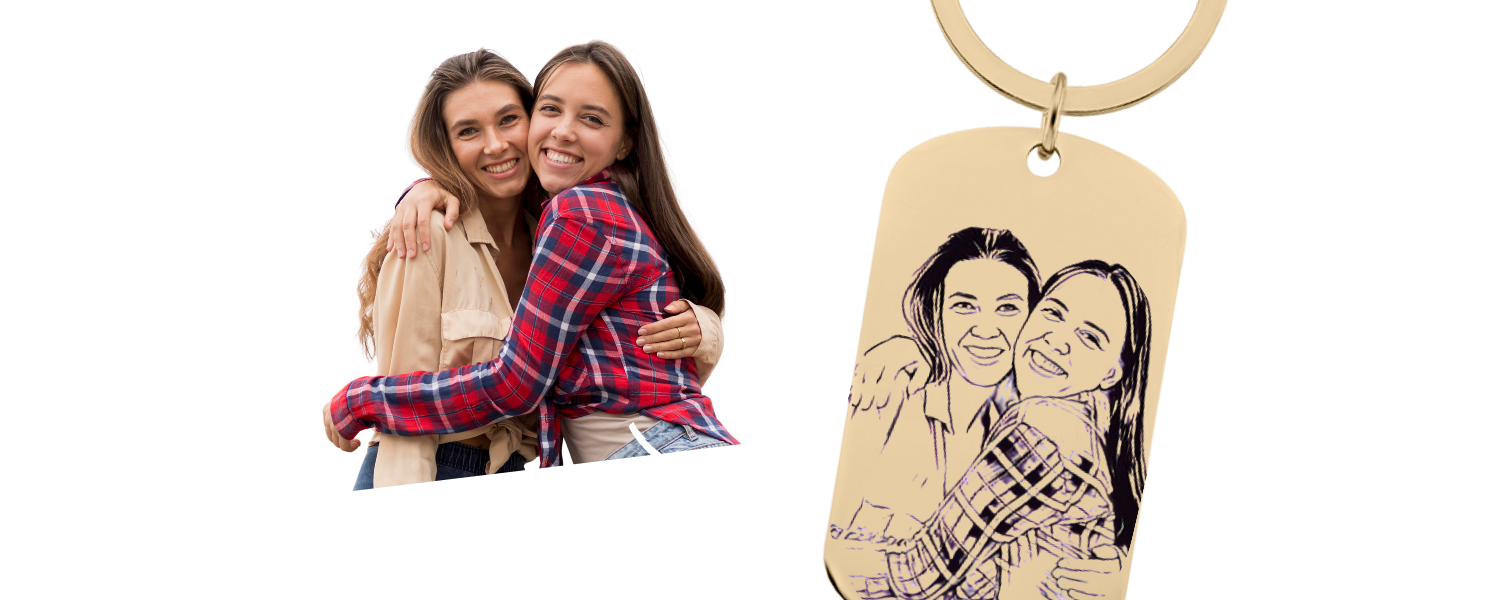 Personalisierter Schlüsselanhänger mit quadratischer und kreisförmiger Fotogravur