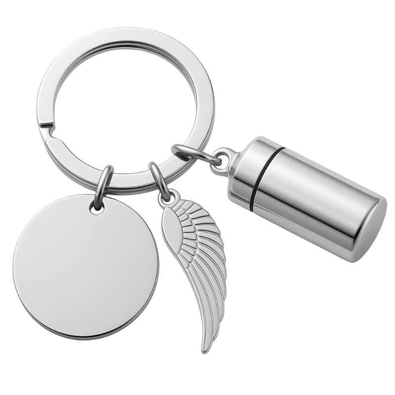 Porte-clés Commémoratif Personnalisé avec Photo & Compartiment Cendres – Souvenir Gravé sur Mesure